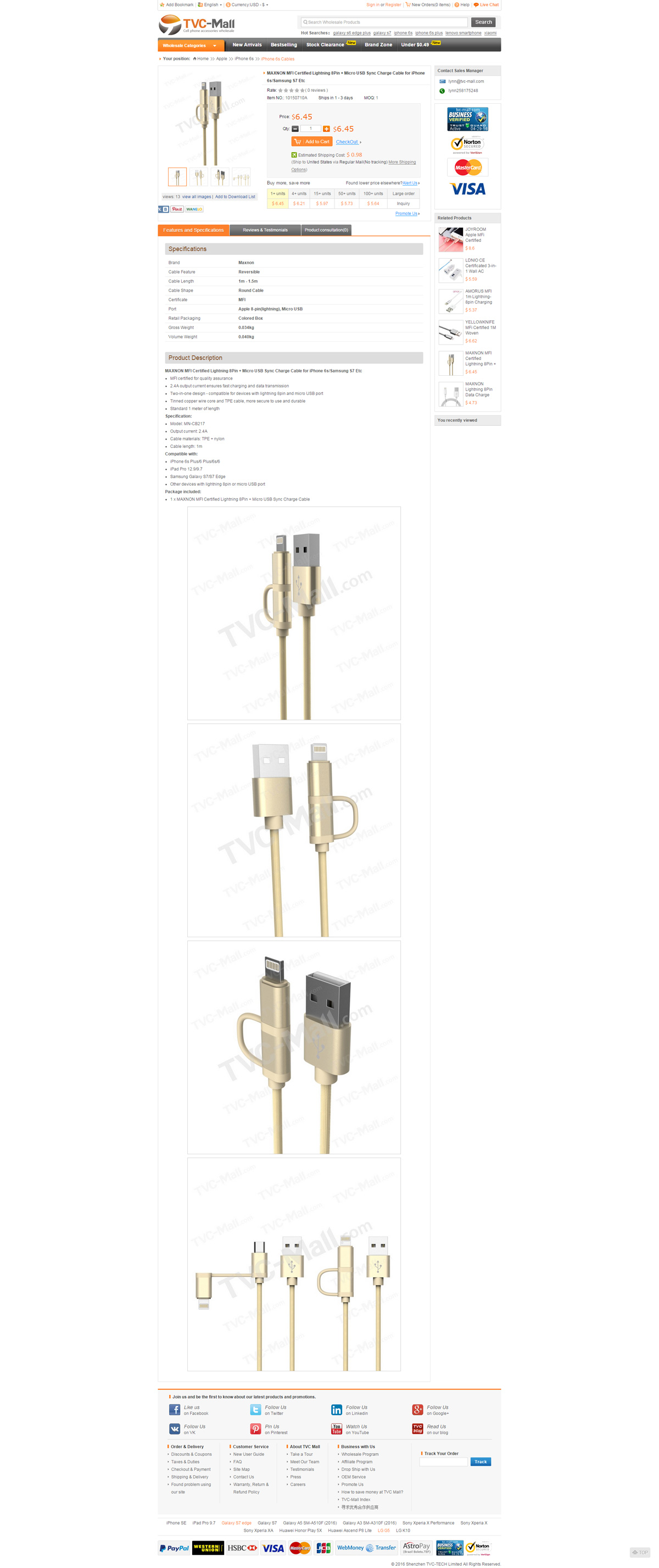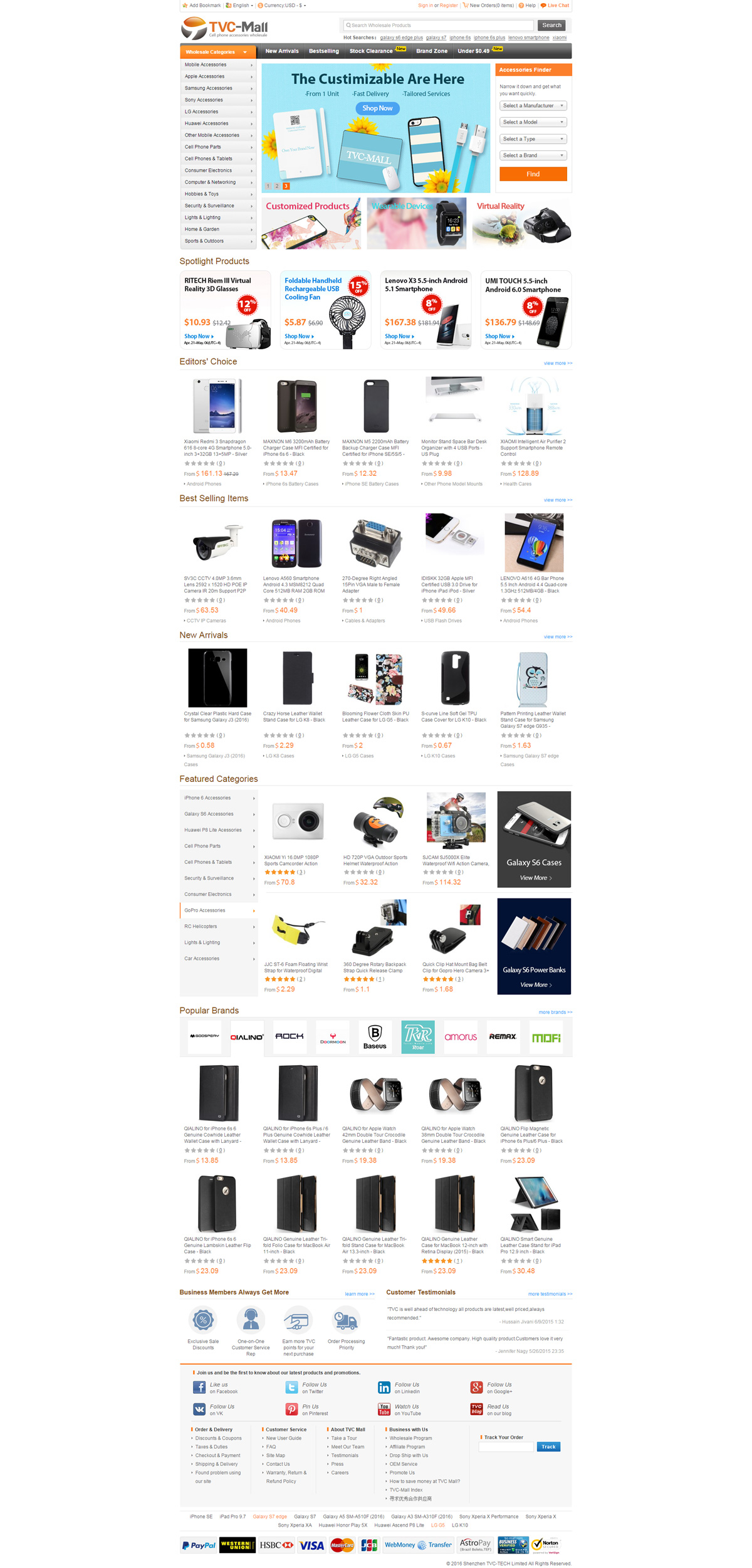 tvc-mall.com是深圳最大的3C數(shù)碼配件綜合外貿(mào)商城網(wǎng)站之一,公司也做亞馬遜平臺(tái),在B2C外貿(mào)出口方面非常知名,是一個(gè)年銷售額過億的外貿(mào)公司。Welcome to TVC-Mall, a fast-growing and leading supplier of replacement parts and accessories for cell phones, tablets and other devices.