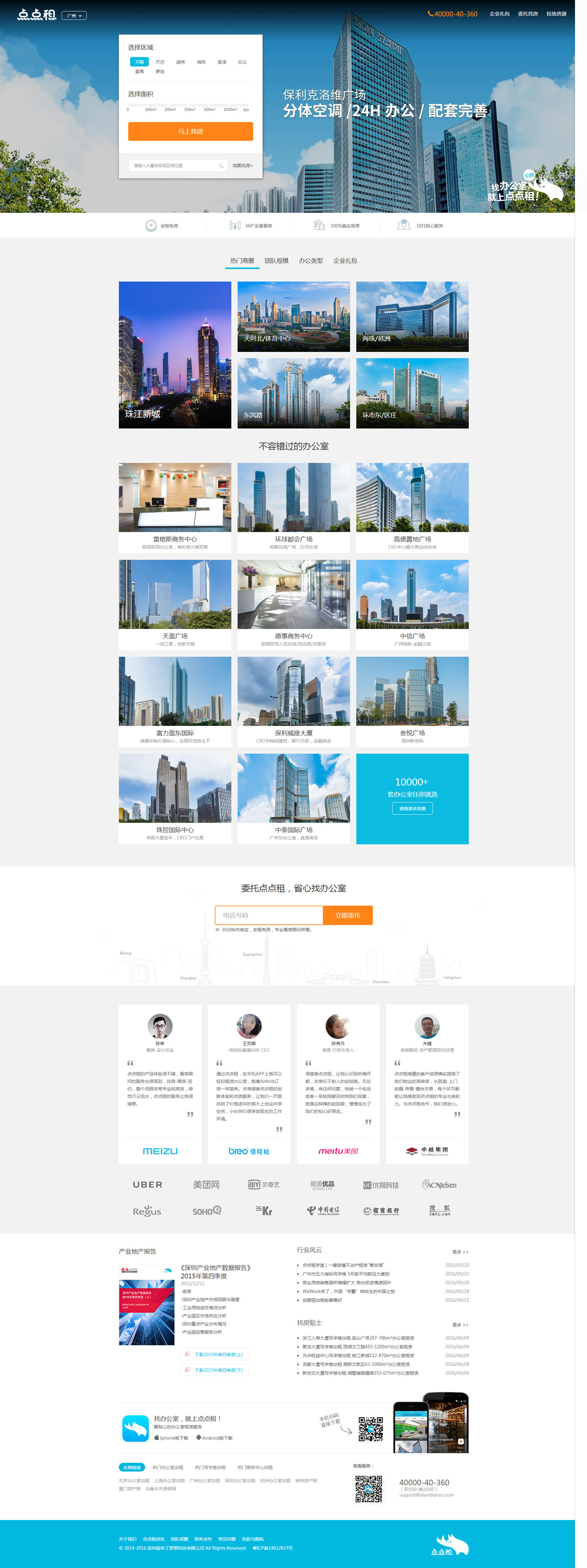 以提升企業(yè)用戶租賃體驗和找房效率為核心原則,杜絕任何虛假和低質(zhì)量的房源信息,通過“線上選房-智能匹配-陪護看房-撮合交易”的標準流程,為用戶提供最貼心的租房服務(wù)。與此同時,為了在業(yè)主方和企業(yè)租戶之間搭建了快速服務(wù)通道,點點租直接與開發(fā)商/運營商合作,并通過專業(yè)室內(nèi)攝影、室內(nèi)全景、街景、地圖找房等模式,在移動端APP(iOS/Android)和PC端,提供前所未有的360°看房體驗