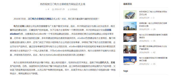 首先,電力士照明品牌推廣事業(yè)部官網(wǎng)由eGoBest負(fù)責(zé)建設(shè),在負(fù)責(zé)建設(shè)電力士官網(wǎng)后,eGoBest整個(gè)網(wǎng)站建設(shè)團(tuán)隊(duì)都投入其中,還專(zhuān)門(mén)成立了項(xiàng)目小組到電力士公司進(jìn)行實(shí)地考察,詳細(xì)地了解了電力士的發(fā)展歷程、企業(yè)文化與產(chǎn)品特點(diǎn),經(jīng)過(guò)協(xié)商探討,最終將電力士照明品牌推廣事業(yè)部官網(wǎng)確立為簡(jiǎn)約風(fēng)格主,同時(shí)兼具美觀大氣的特點(diǎn)。