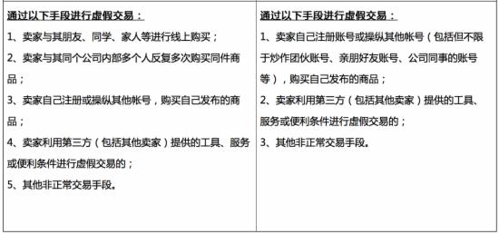 經(jīng)修訂后,賣家若發(fā)生虛假交易行為,不論是第一次還是第二次,違規(guī)交易筆數(shù)在96筆以下的每次以一般違規(guī)行為扣兩分;若違規(guī)交易筆數(shù)在96筆以上,每次以一般違規(guī)行為扣十二分。而在以往的細則中,賣家第一次貨第二次發(fā)生虛假交易行為,若違規(guī)次數(shù)未達96筆,僅對賣家行為進行糾正而不扣分。