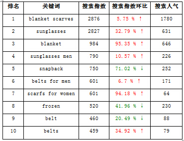 外貿(mào)B2C時尚配件熱搜詞