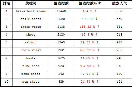鞋類與鞋類輔料行業(yè)熱搜關(guān)鍵詞如下:
