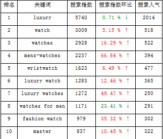 2015年跨境電商平臺珠寶、表行業(yè)熱門關(guān)鍵詞如下: