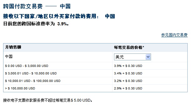 針對不同商家賬戶,PayPal將設置不同的收費標準(根據(jù)交易額) PayPal的標準收費并沒有上漲,